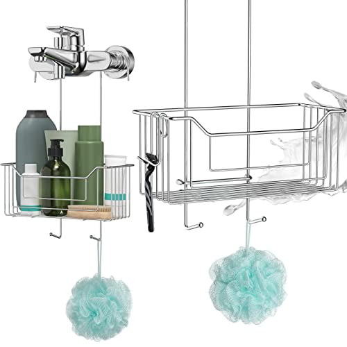 LAAKFELD Termostat duschhylla för hängande rostfritt stål inkl. gratis rakhållare - flexibel duschkorg för upphängning för armaturer - 1 A duschhylla för upphängning utan borrning - duschgelhållare