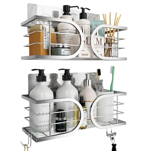 Adurei Duschhylla utan borrning rostfritt stål 304 stor kapacitet rostfri duschhylla duschkorgar organisatör för badrum och kök toalett 2 stycken – silver