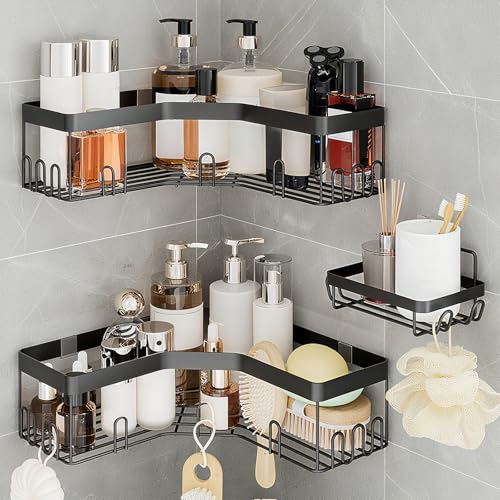DIFULI Duschhylla utan borrning hörn, badrum duschhylla, hållbar rostfritt stål badrumshylla utan borrning, rörlig badrumsorganisatör hylla badrumshylla för schampo och duschgel, badrumstillbehör (svart)