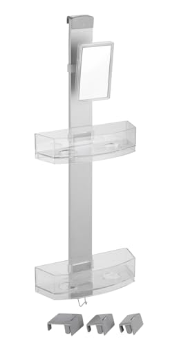WENKO Duschcaddy Premium, duschhylla med antidimspegel, 2 hyllor och krokar i rostfritt stål, lätt att hänga på duschväggen, fastsättning utan borrning, tillverkad av aluminium och plast, 25 x 71 x