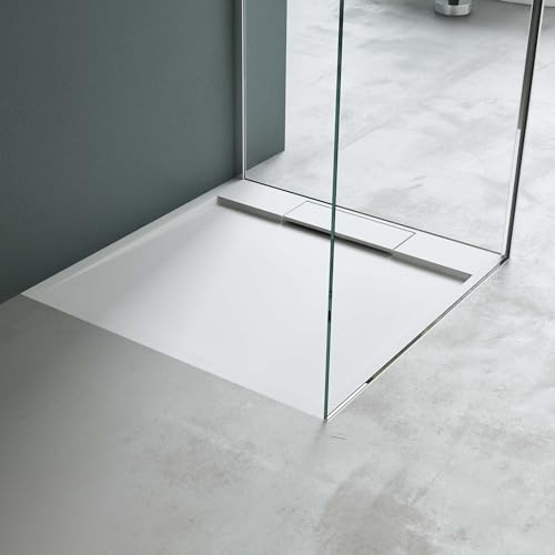 VILSTEIN Duschbricka | glasfiberförstärkt | 5 cm platt | duschkar med lutning | duschkar | vattenlås | duschkar | sifon opt. | Högglans vit | 70 x 70 cm