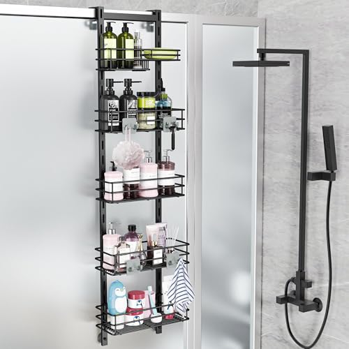 Orimade över dörren duschhylla justerbar hängande organiseringshylla rostfri med krok, schampohållare badrumshylla med tvålhållare, duschkorg med sugkopp extra stor, 5 nivåer (US patent)