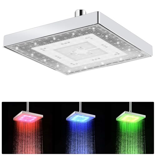 20 cm (8 tum) duschmunstycke regndusch LED-huvuddusch regnduschhuvud med 3 färger temperaturkontroll, högt flöde duschhuvud dusch kvadratisk för hem badrum