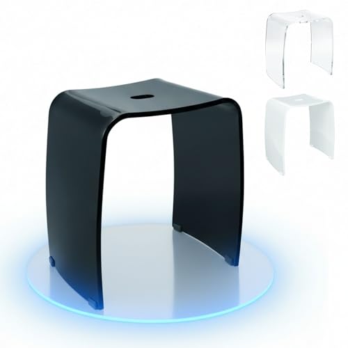 Meran Duschpall – Duschpall i Akryl med Handtag, Ergonomisk Sits, Halkfria Gummifötter & Tidlös Design (Klarar upp till 180 kg) (svart)