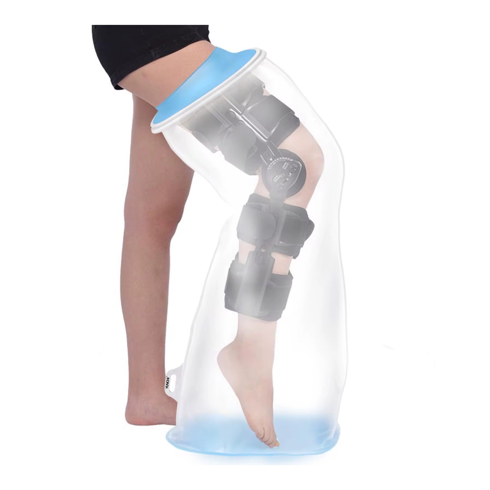 YUNCHI Uppgraderat duschskydd ben vuxna halkskydd XL gipsskydd vattentätt ben förbandsskydd återanvändbar duschsäck för fot gips underben, gipsbinda (kort benskydd XL)