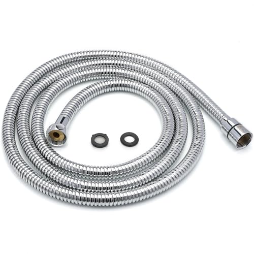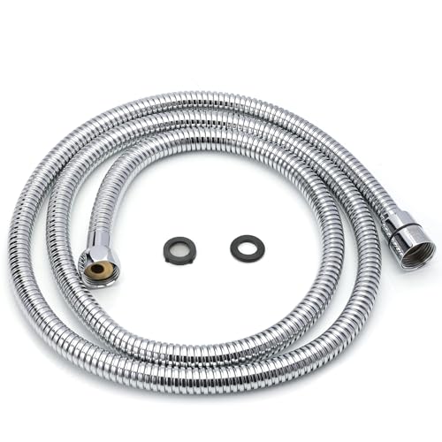 H&S Duschslang i rostfritt stål med 2 brickor – 1,5 m (59 tum) – extra lång universell ersättningsslang med kromfinish – motverkar vridning och högt flöde flexibel handhållen förlängning