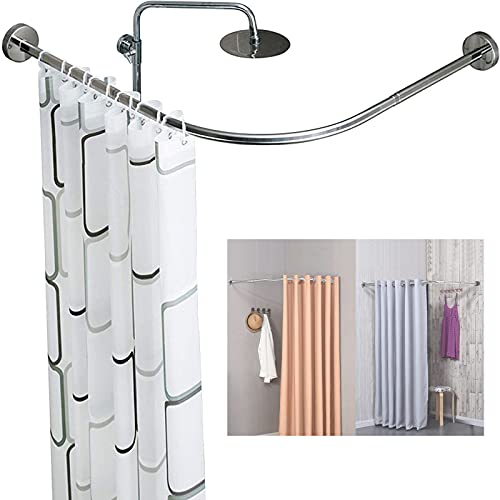 Böjd Duschstång Ingen Borrning, Justerbar Duschdraperi L -formad, Badrum Badkar Hörn Duschdraperi, 304 Rostfritt Rostar Aldrig, För Badrum, Klädbutik,A