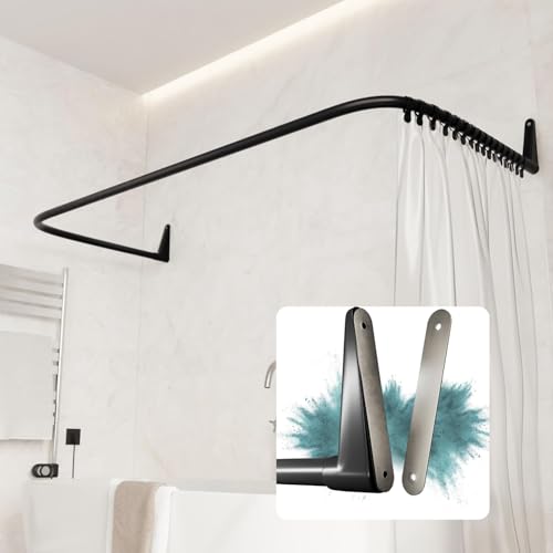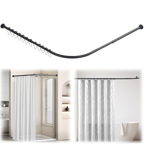Duschdraperistång L-form, duschstång för duschdraperi, justerbart hörn, duschdraperiskena med 12 krokar, stretchig 304 rostfritt stål hörnduschstång (borrmontering krävs) (68–98 cm x 68–98 cm svart)