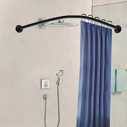 Erica Vinklad Duschstång 70x90/70x160 cm, Väggmonterad för Hörn eller Badkar, Fribärande utan Takfäste, Svart Pulverlackerat Stål, 100% Rostbeständig