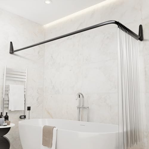 YOFOQ Duschdraperistång L-form, justerbar L-formad hörnduschstång 62–94 x 141 – 174 cm, duschdraperistång hörn av rostfritt stål, duschstång för badkar med 16 duschdraperiringar