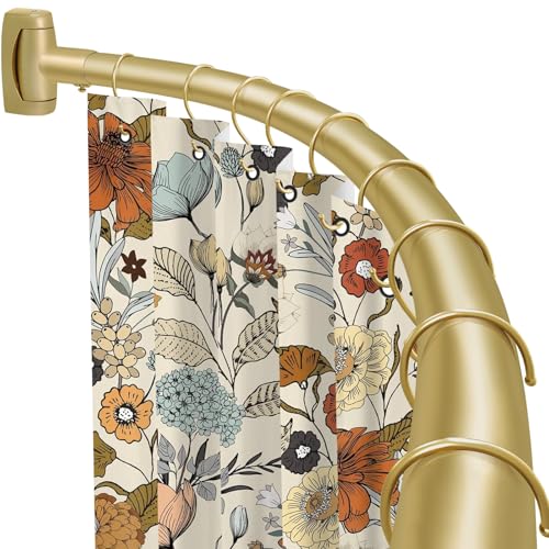 YNL Böjd duschgardinstång 35–82 tum (2,9–6,8 fot), guld rund rostfri duschstång för badrumsbadkar, justerbar välvd duschdraperistång, rostar aldrig |Extra utrymme |Halkfri|Expanderbar|Behöver borras