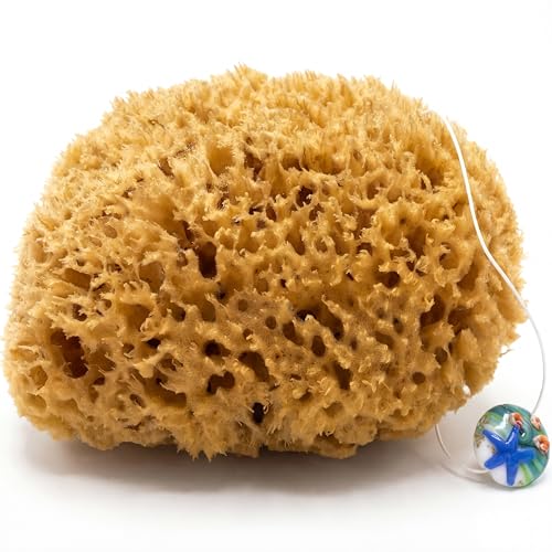 tom&pat® Natursvamp • med snöre och glashängare • duschsvamp och badsvamp • peeling-effekt • oblekt • Dermatest utmärkt • premiumkvalitet Grekland (17-18 cm)