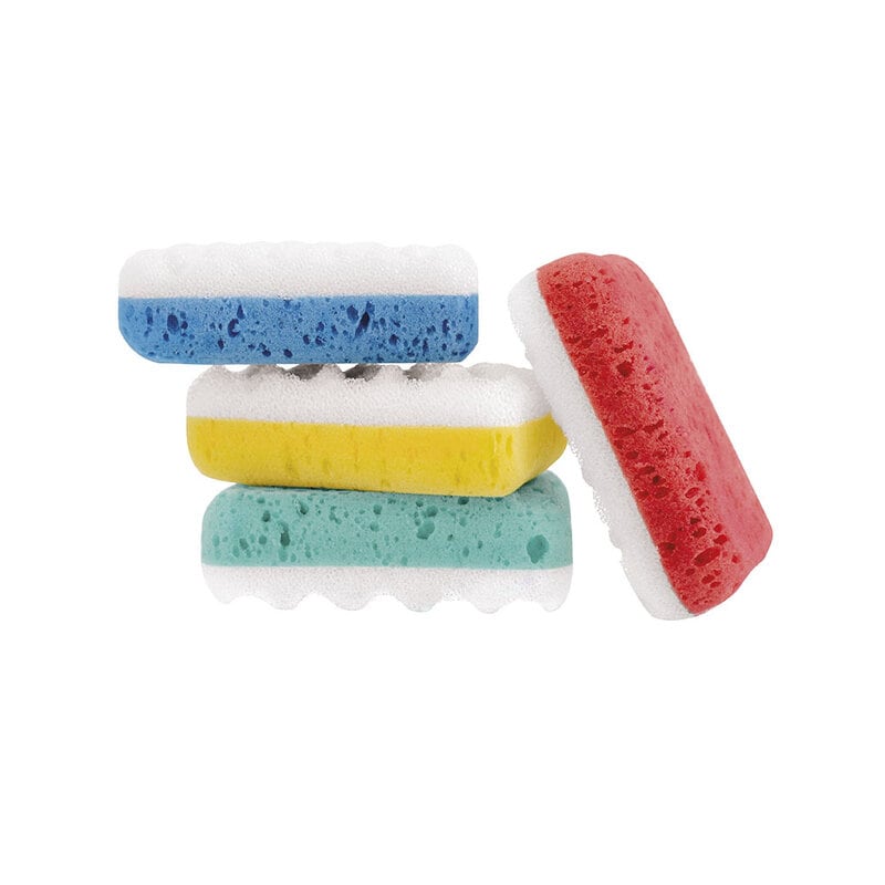 COM-FOUR® 4x duschsvamp - badsvamp i fantastiska färger - tvättsvamp för dusch - massagesvamp - duschpinne [färgval varierar!] (04 stycken)