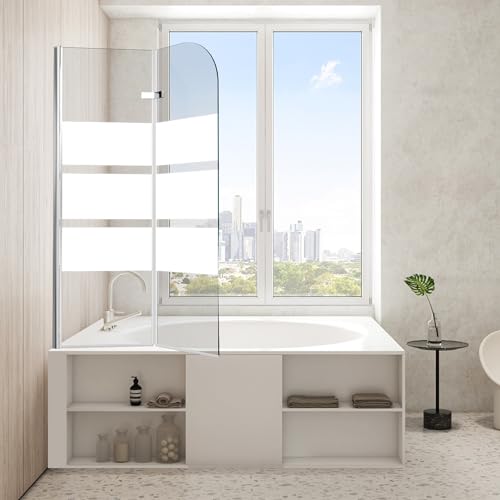 Jopassy Duschvägg för badkar, 100 x 140 cm, vikbar duschvägg badkar, med 6 mm säkerhetsglas, badkar, duschvägg, vita ränder, glas, badkarsvägg med badkarsfäste