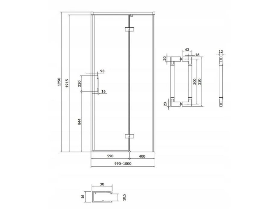 Västia Care Duschhörn 2V U-profil Duschväggar2v 100x90