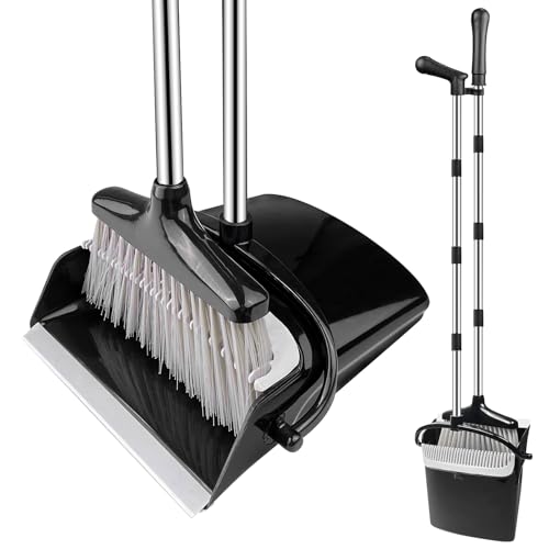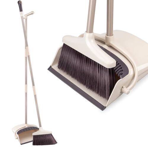 TreeLen Broom and Dustpan Set, Stand Up Broom and Dustpan for Home Cleaning