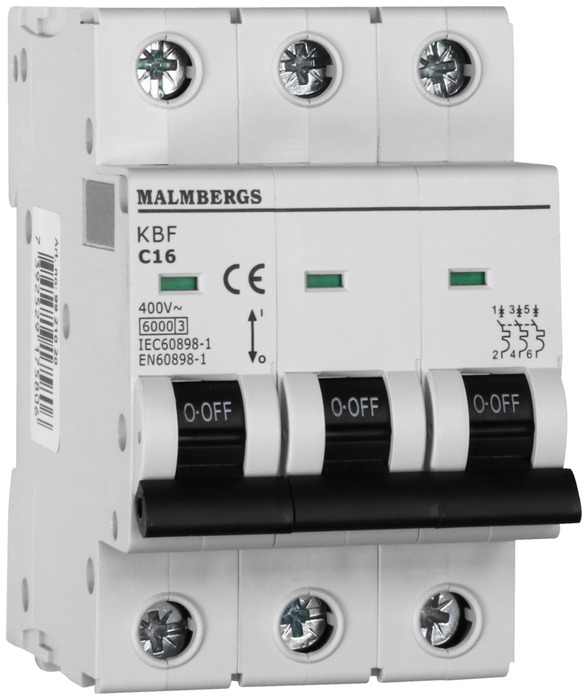 Dvärgbrytare c-typ 3-pol 16a 6ka malmbergs