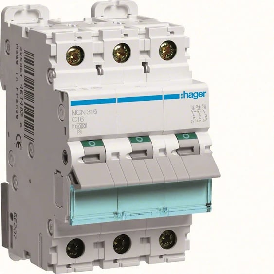 Hager NCN316 Dvärgbrytare 3-polig, 10kA, C-karakteristik 16A