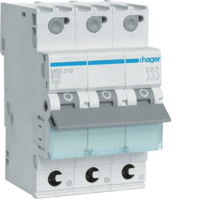 Hager MBS310 Dvärgbrytare 3-pol, 6kA, B-karakteristik 10A