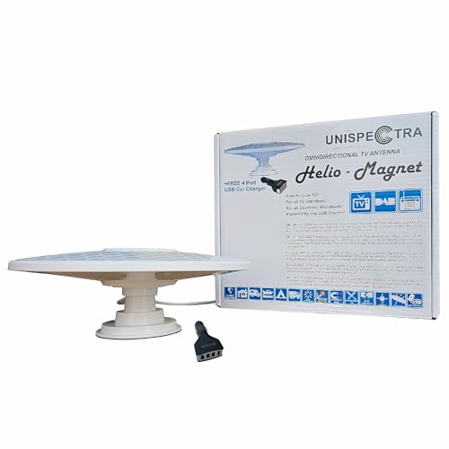 Helio - digital förstärkt magnet rundstrålande HD TV antenn hög 33dB TNT DVB-T2 FM Dab. 12V 24V 5V USB idealisk för tung vikt husvagn båt eller camping av Unispectra®