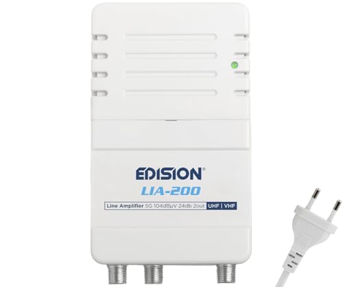 EDISION LIA-200 förstärkare UHF/VHF inomhus-TV-antenn, 12-24 db justerbar, 104dBmV, för digital markbunden DVB-T/T2, med 5G LTE-filter, 1 ingång, 2 utgångar