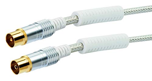 Slank antenn anslutningskabel 90 dB med ferritkärna, 3,0 m, vit, IEC kontakt > IEC uttag, 2-delad skärm, 75 ohm, digital, HDTV, DVB-C/DVB-T2