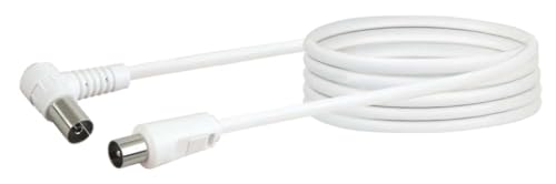 Schwaiger antenn anslutningskabel 75 dB, 3,0 m, vit, IEC kontakt > 90° IEC vinkeluttag, 2-vägs avskärmning, 75 ohm, digital, HDTV, DVB-C/DVB-T2
