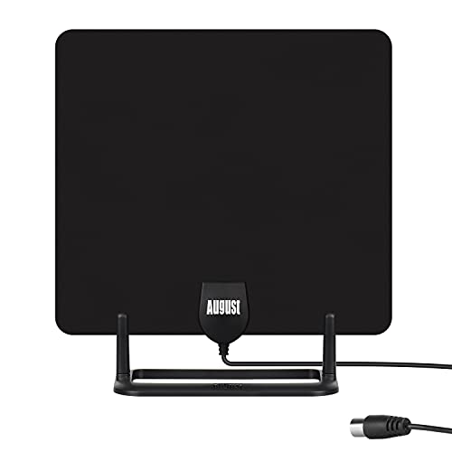 August DTA450 - TV Antenn Inomhus HD - Kraftfull digital Bärbar Plattantenn med Stark Signal DVB-T DVB-T2 och 3 Meter Lång Kabel - Svart