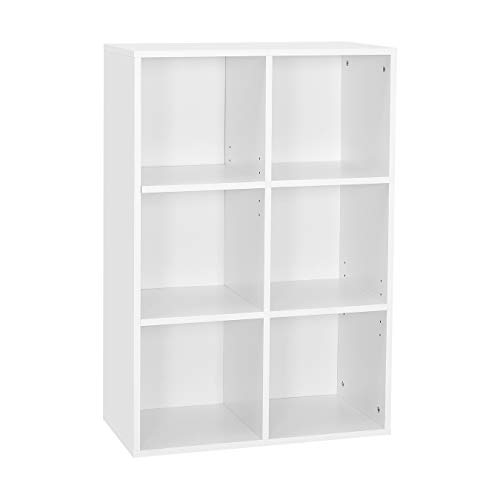 Mondeer bokhylla, bokskåp med 6 fack, trähylla, förvaringsskåp för böcker och DVD-skivor, förvaring i tre lager, vit