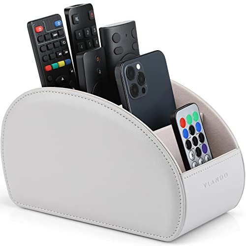 Londo Fjärrkontrollshållare med 5 fickor – plats för DVD, Blu-Ray, TV, Roku eller Apple TV-fjärrkontroller – PU-läder med mockafoder – smal och kompakt för förvaring (vit)