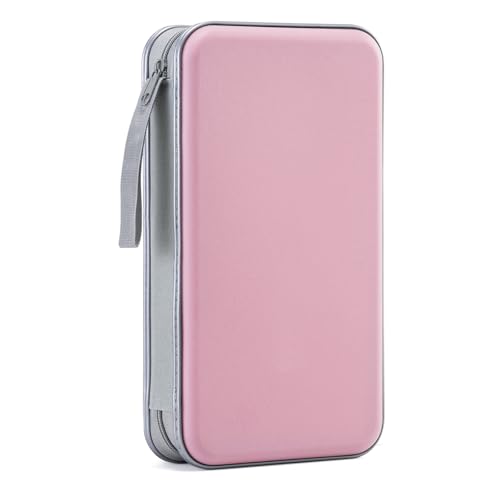 LIOVODE DVD-fodral, 96 kapacitet CD-fodral bärbar CD-hållare förvaring hårdplast DVD plånbokshållare organiserare för bil (ljusrosa)