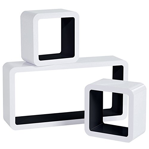 WOLTU flytande hyllor, svävande hyllor i form av kuber, uppsättning med 3, förvaring för CD-skivor, DVD-skivor, leksaker, display, bokhylla, dold väggmonterad hylla, trä, dekorativ hemförvaring, arrangör, vägg, svävande hylla, RG9229sz, svart