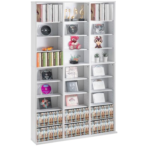 VEVOR Multimedia Förvaringslåda, 9 Lager DVD-hylla, Rymmer Upp till 756 CD-skivor, Justerbara CD-hyllor 27 Fack, Skyddar Organisera Musiksamlingar Filmer Videospel Memorabilia Vit