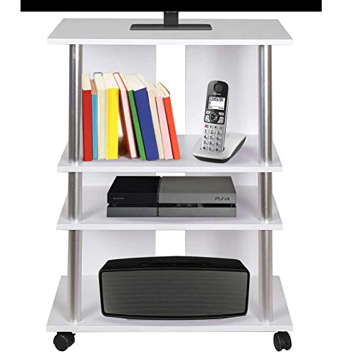 Bakaji Trä MDF TV-skåp med 3 hyllor Dörr Console Videospel DVD och 4 Hjul Skåp Vagn Dörr TV Design Modern Storlek 60 x 45 x 80,5 cm arm stöd (Vit)