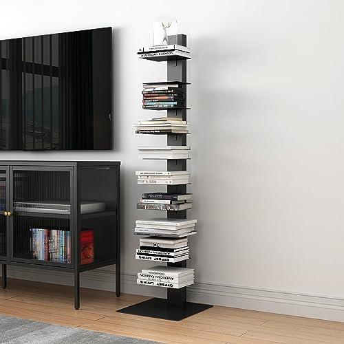 [en.casa] Stående hylla Eksjö CD DVD-hylla i smal stege med 10 hyllor bokhylla för vardagsrum och sovrum kontor 150 x 39 x 39 cm svart