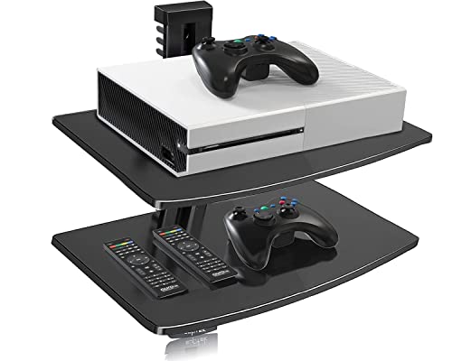suptek 2 flytande hyllväggfästen med förstärkt härdat glas för DVD-spelare/kabellådor/spelkonsoler/TV-tillbehör, 2 hyllor, svart CS202