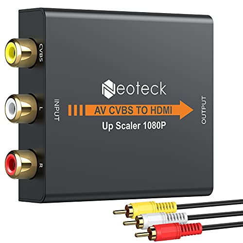 Neoteck CVBS till HDMI All Metal Converter med 1 m RCA-kabeladapter 1080P 3RCA AV CVBS komposit till HDMI för PS3 STB VHS VCR Blu-Ray DVD-spelare projektorer - uppgraderad version