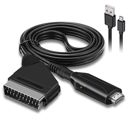 AMANKA Scart till HDMI-kabelomvandlare, adapter och scart kabel Full HD 1080P videoljudomvandlare för HDTV STB VHS Xbox PS3 Sky DVD Blu-ray etc
