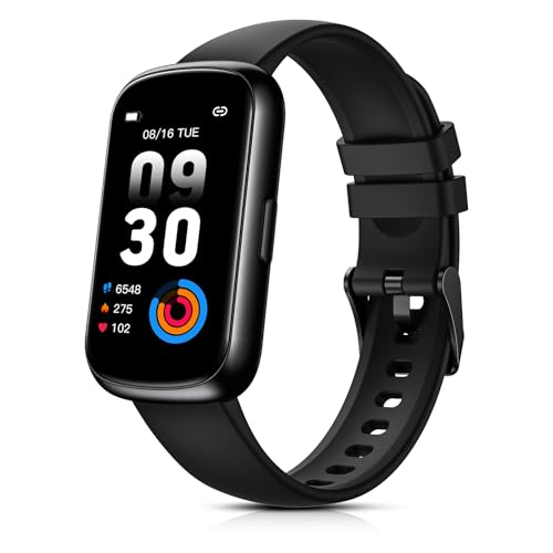 TIFOZEN Fitness Tracker för kvinnor män, smart klockarmband med puls dygnet runt, syre och sömnövervakare, kalorier, stegspårare, stegräknare, 3 ATM vattentät aktivitetsmätare för Android iOS, svart