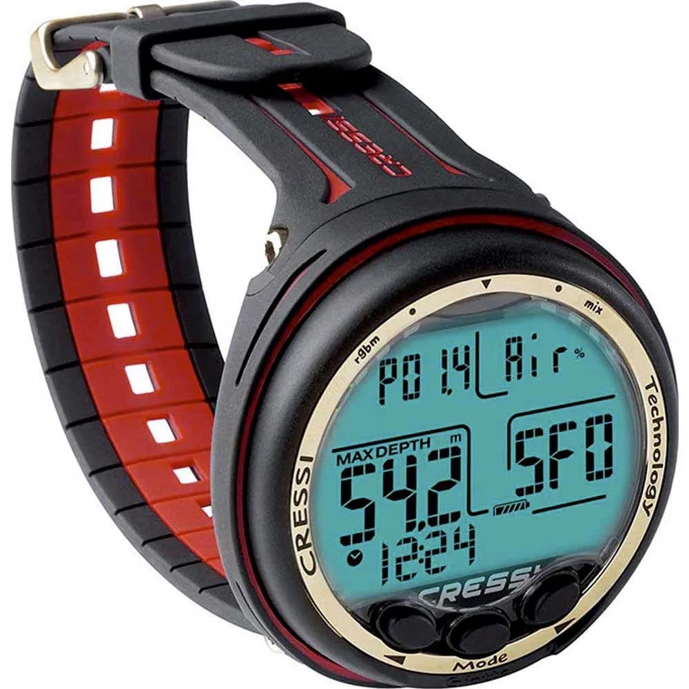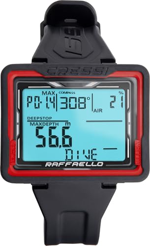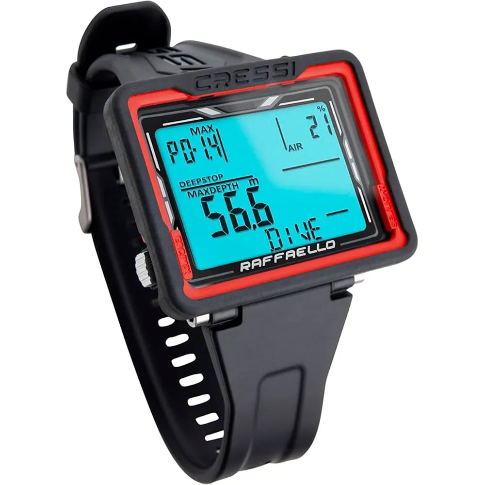 CRESSI Raffaello dykdator svart/röd – unisex dykdator med stor rektangulär skärm med hög kontrast för maximal datavläsbarhet, svart/röd, en storlek