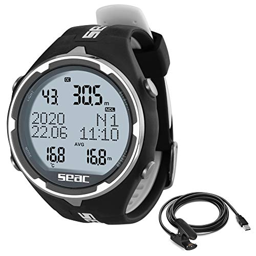 Seac Action, Dykdator för dykning och fridykning, Dykloggbok, Dykplanerare, Säkerhetslarm, svart HR + USB