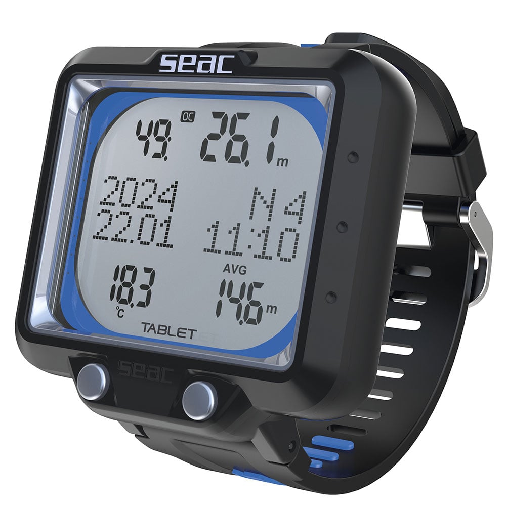 Seac Action, Dykdator för dykning och fridykning, Dykloggbok, Dykplanerare, Säkerhetslarm, svart/blå + USB
