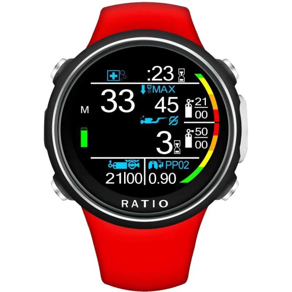 Seac Screen, dykdator för handleden med två gaser, mätare och fridykningsläge, svart/röd