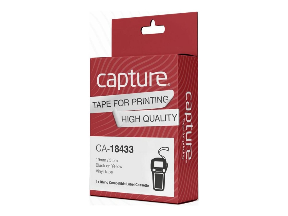 Capture - Vinyl - Laminerad - Permanent Häftning - Svart På Gult - Roll (1.9 Cm X 5.5 M) 1 Kassett(Er) Hängande Låda - Etiketttejp (Alternativ För: Dymo 18433) - För Dymo Rhino 4200, 5200, 6000 Rhinopro 5000