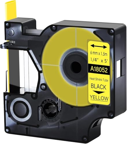 1-pack Cruxer ersättning för DYMO noshörning etikettband 18052 1/4 tum 6 mm 1,5 m värmekrympslang etikettband svart på gul noshörning etikettband 10851 kompatibel med DYMO Rhino 4200 5200 5000 6000 etiketttillverkare