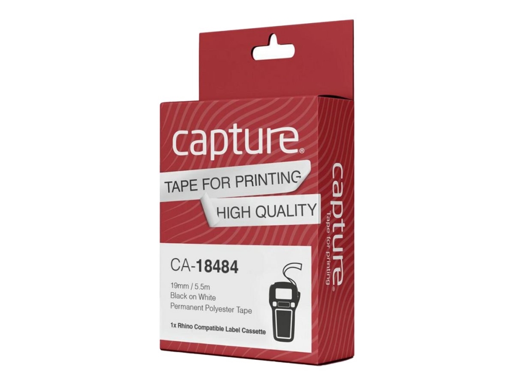 Capture - Polyester - Laminerad - Permanent Häftning - Svart På Vitt - Roll (1.9 Cm X 5.5 M) 1 Kassett(Er) Hängande Låda - Etiketttejp (Alternativ För: Dymo 18484) - För Dymo Rhino 4200, 5200, 6000 Rhinopro 5000