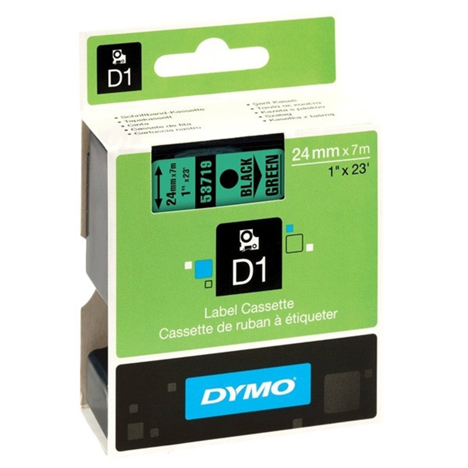 Märkband Dymo D1 24mm svart/grön