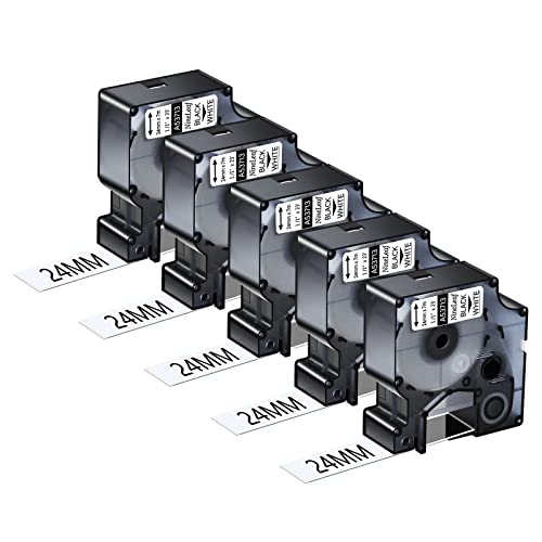NineLeaf 5-pack 24 mm tejp, kompatibel med DYMO 53713 S0720930 svart på vitt självhäftande för Dymo LabelManager MobileLabeler 450D 500TS trådlös PnP etikettWriter 450 Duo Rhino 6004