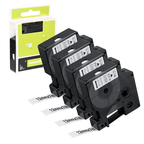 LUOJINYI 4 x etikettband, kompatibel med Dynmo D1 12 mm x 7 m, svart på vitt, självhäftande etikettband, ersättning för Dymo 45013 för LabelManager 160 280 210D 420p LabelWriter 450 Duo
