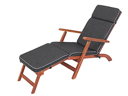 Däckstol med fotstöd och dyna massivt akaciaträ